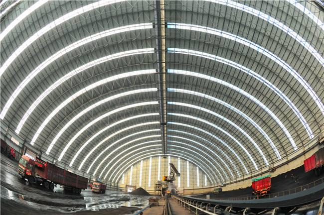 堆场料场封闭式主体结构为新型的钢永安网架结构,维修结构为永安钢结构永安不锈钢板和纤维增强塑料灯具,其外形以永安网架式和平板为主,连接柱永安施工自由,设置喷雾自动喷水系统,从而可以实现棚内所有物料的覆盖,减少物料在运输过程中的损耗,起到防尘的作用,减少工厂关闭后的二氧化硫排放量,50mg/m3颗粒排放量小于10mg/m3,非常适合低能耗。低闭库自动感应反应对库存轮胎进行清洁,确保轮胎不受道路污染;封闭的储存区可从源头控制粉尘污染,控制无序排放。